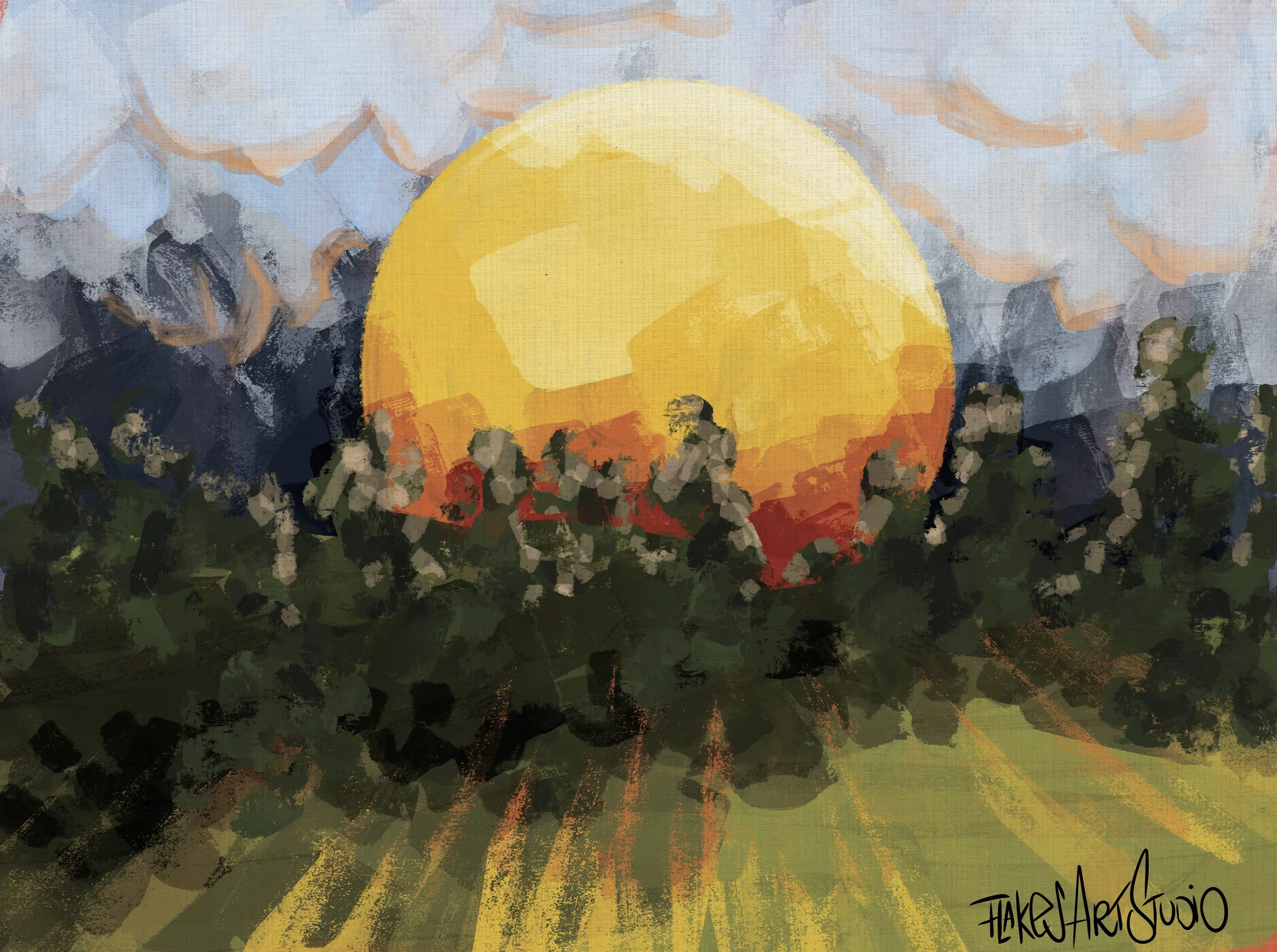 Ich arbeite hauptsächlich mit meinem iPad Pro und Procreate, aber auch in Adobe Fresco.